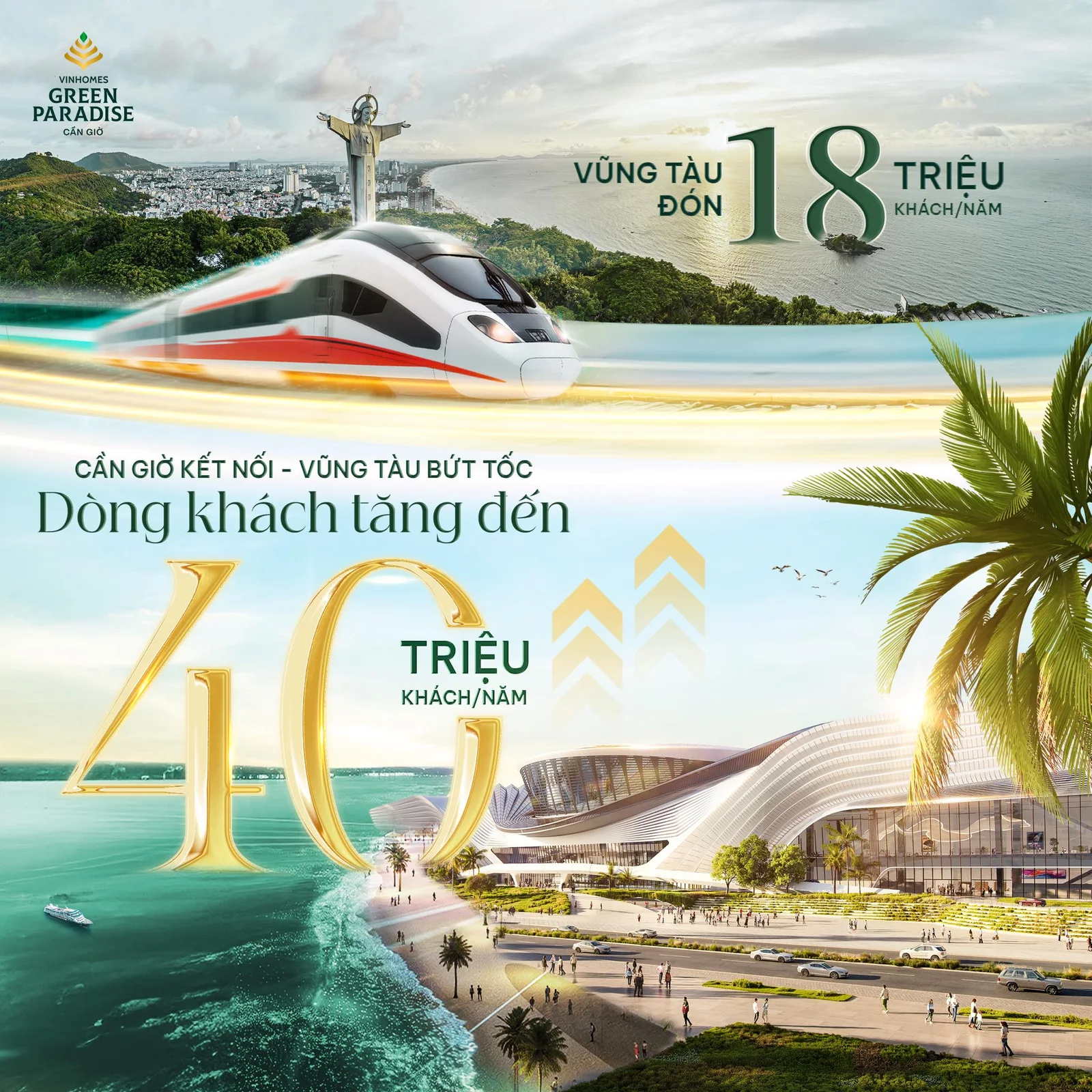 Cùng với đó là siêu đô thị du lịch biển Vinhomes Green Paradise (2.870 ha) đang dần hình thành – “kỳ quan đô thị trên biển” biểu tượng mới của TP.HCM