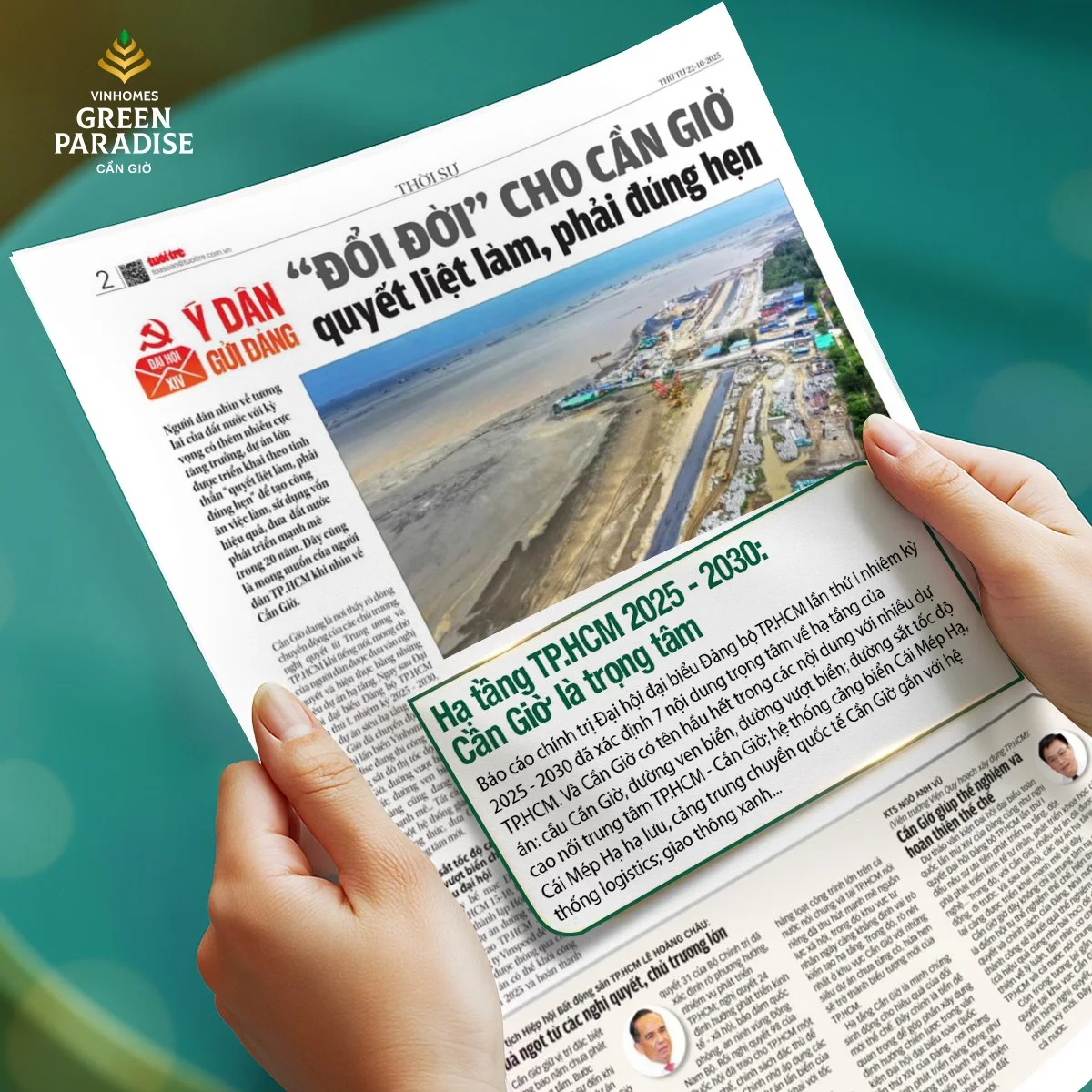 Bài viết trên Báo Tuổi Trẻ (22/10/2025) ghi nhận một Cần Giờ đang bước vào hành trình “đổi đời” – mạnh mẽ, quyết liệt và tràn đầy khát vọng.