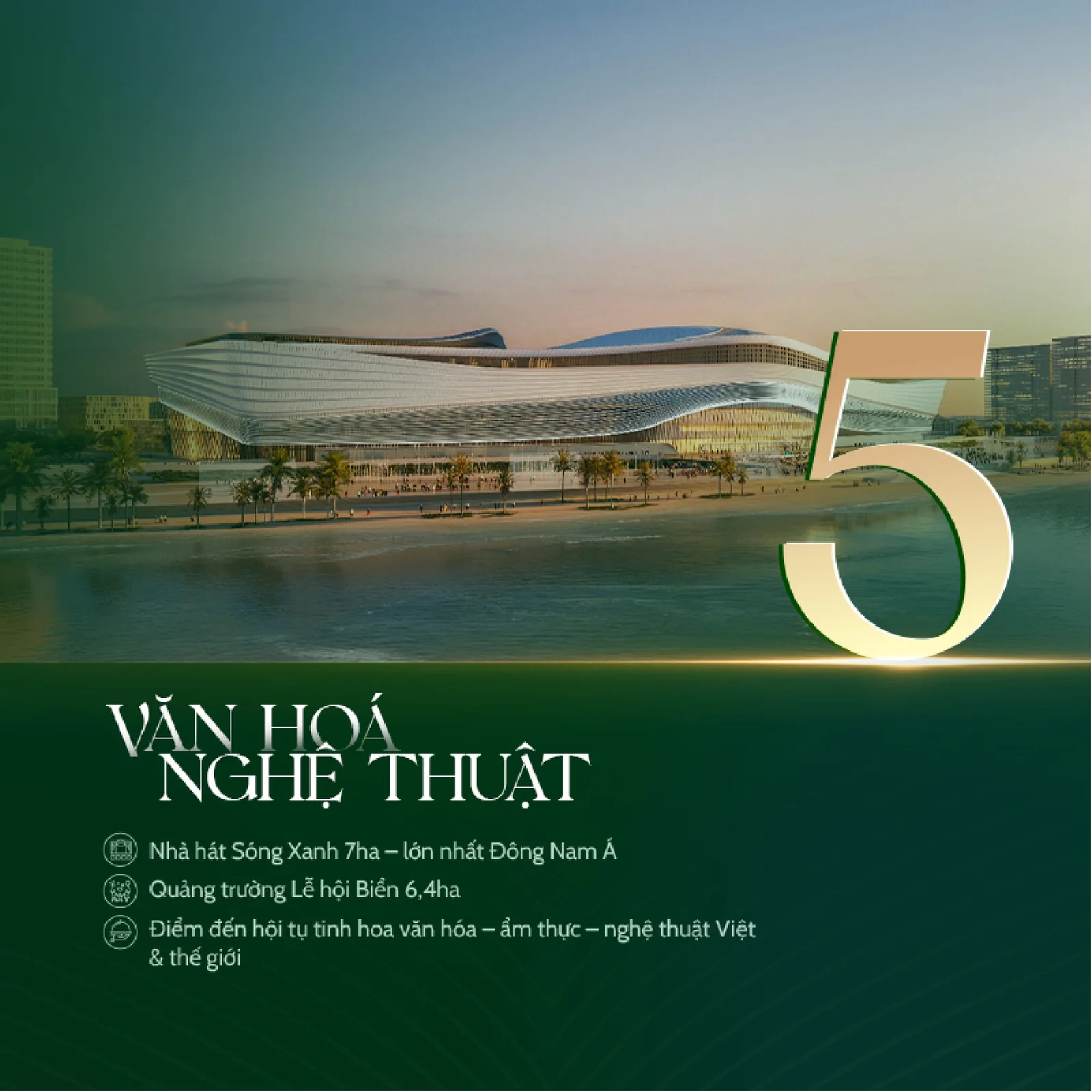 Không gian văn hoá nghệ thuật, vui chơi giải trí, du lịch nghỉ dưỡng và thiện nguyện kết nối cư dân tinh hoa, lan tỏa giá trị sống đẹp.